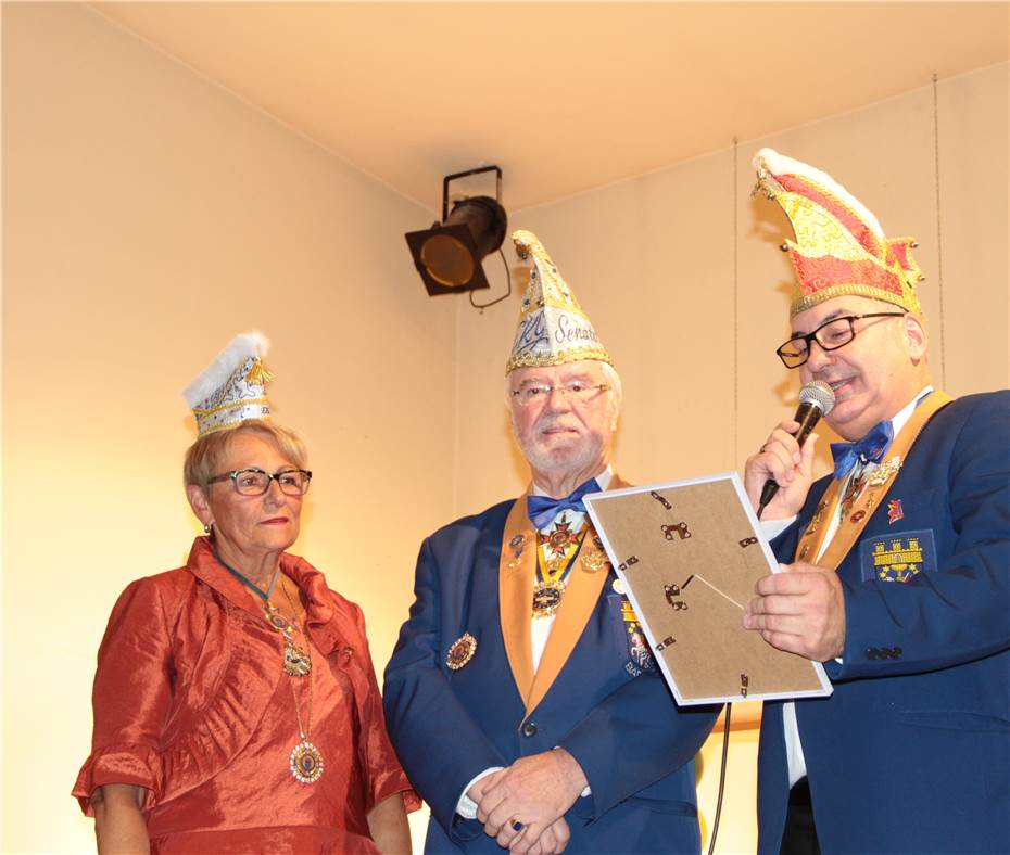 Frank Ackermann machte es wie immer spannend. Zuvor marschierten alle anwesende Senatorinnen und Senatoren, begleitet von flotter Musik durch den Alleinunterhalter Charly auf die Bühne. Der älteste Senator der EKG ist mit 93 Jahren Lothar Seitz (SPD) gerne auch der „rote Bruder“ genannt.