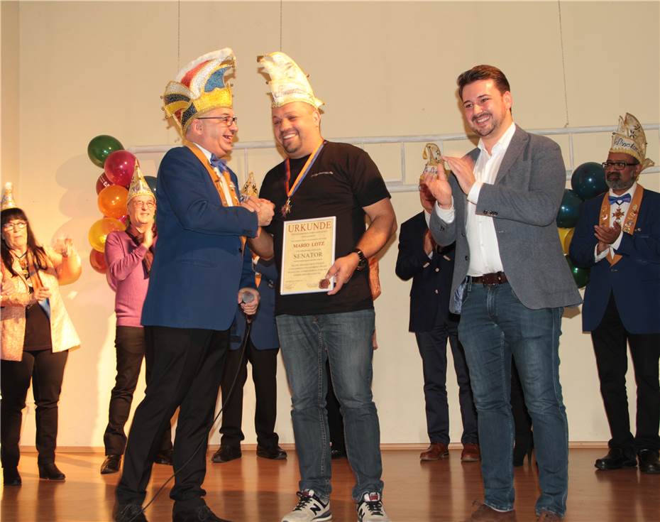 „Normal wissen die meisten von euch, wenn ich zwei Sätze über die Person vortrage, um wen es sich handelt. Im März 1995 ist diese in die EKG eingetreten und war aktiver Tänzer beim Showtanz. Er ist ziemlich laut unterwegs mit einem bestimmten Instrument. 1994 war er ein Gründungsmitglied der „Gugge´mer´ma“, die in diesem Jahr ihren 25. Geburtstag feiern konnten. Seit dreizehn Jahren ist er der Vorsitzende dieser tollen Musikformation. Mario Lotz ist der neue Senator der Kampagne 2020“, so der Präsident.
