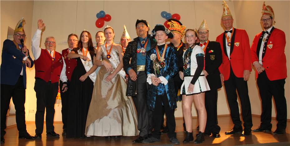 Nachdem die feierliche Zeremonie vollzogen war, begrüßten die jungen Tollitäten die Narrenschar.