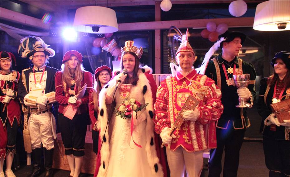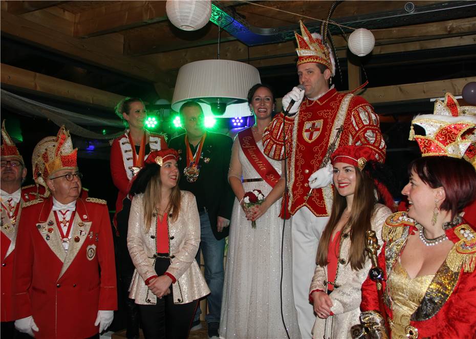 Aus Koblenz, die Tollitäten der einzigen Stadt an Rhein und Mosel, Prinz Marco I. vom Geisbach und die charmante Confluentia Kim, samt Gefolge der Funken „Rot-Weiß-Gold“ aus Metternich.