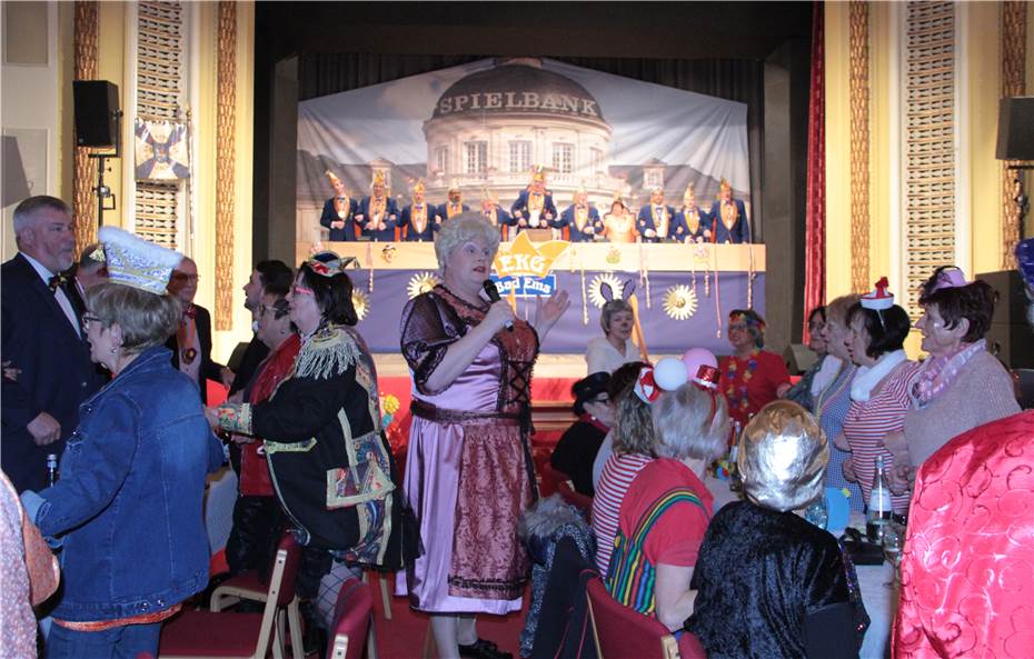 Fröhlich, herrlich bunt verkleidete Frauen strömten auch in Bad Ems am Tag der Frauen, in das historische Kurhaus an der Lahn. Schon vor Beginn eines umwerfenden Mammut Programms, war die Stimmung super. Die Sitzungskapelle „Sunshine-Dance“ lud die Damenwelt, in der sich auch ein paar Herren verirrten und wohlfühlten zum Schunkeln und mitsingen ein.