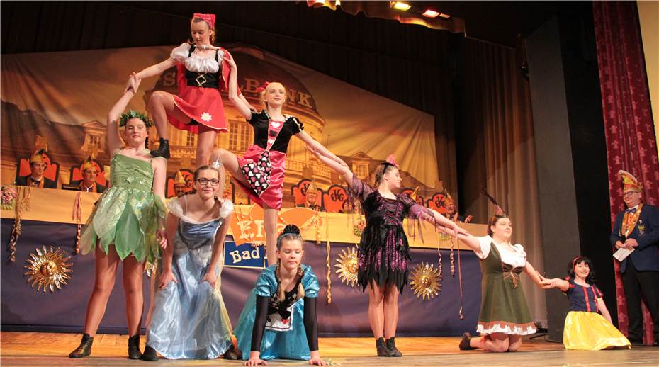 Mit ihren Garde- und Showtänzen glänzten die vereinseigenen Akteure. Während es die Kindergarde in die Fabelwelt zog, sie in ihren schönen Kostümen über die Bühne zur Musik „halt mich, küss mich lieb mich“ schwebten, ging es für die Jugendgarde, angeführt von Prinzessin Lena, in die Märchenwelt. Auch sie beeindruckten das Publikum sehr und ernteten viel Applaus und eine Rakete.