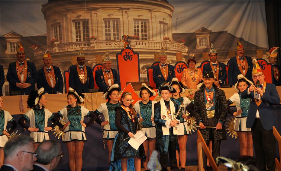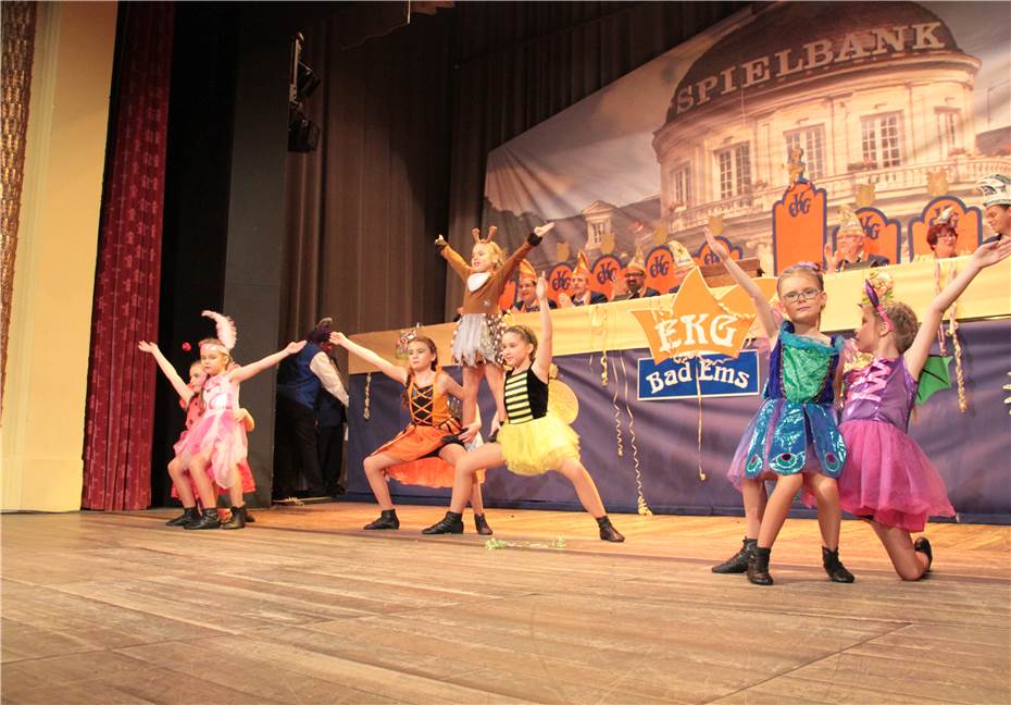 Danach öffnete sich der Vorhang, Sitzungspräsident Frank Ackermann betrat die närrischen Bretter und rief: „Helau Bad Ems, seid ihr gut drauf?“ „Jaaa“ – die Antwort der Narrenschar. „Dann lasst uns gleich loslegen mit einem bunten Programm aus Gardetänze, Showtänzen, humoristischen Leckerbissen und ganz viel Musik. Es wird auch die eine oder andere Überraschung geben, aber auch einen Wehmutstropfen.“